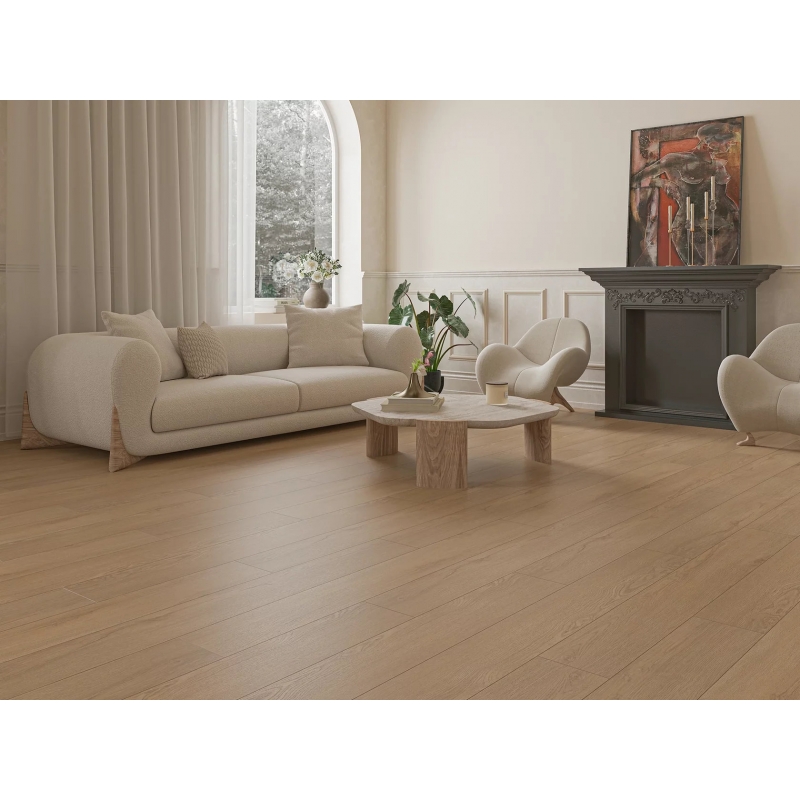 Декор Дуб Вангелис помогает создать гармоничное пространство с натуральным характером и спокойной визуальной подачей. Он хорошо смотрится в интерьерах в стилях сканди, минимализм, современная классика, эко и лофт. Такой пол делает помещение более уютным, цельным и визуально привлекательным.