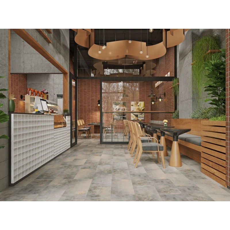 Полимерно-каменное покрытие Cronafloor Stone S003 Ормигон с фаской по периметру плитки для замковой укладки, толщиной 4 мм от Российского производителя Cronafloor. Дизайн выполнен под имитацию камня и плитки.
