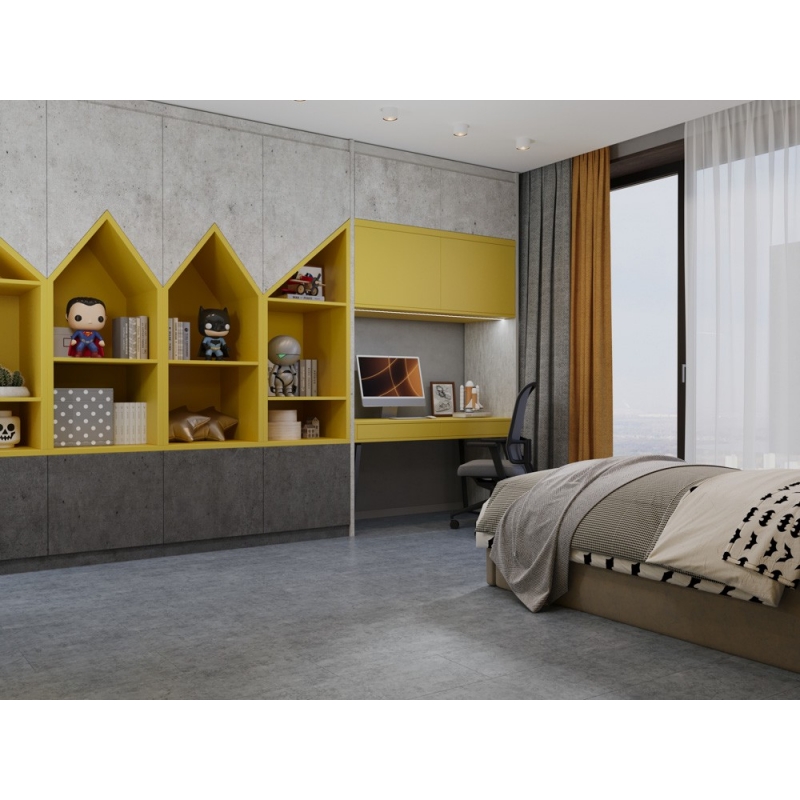 Полимерно-каменное покрытие Cronafloor Stone S008 Мелли Грей с фаской по периметру плитки для замковой укладки, толщиной 4 мм от Российского производителя Cronafloor. Дизайн выполнен под имитацию камня и плитки.