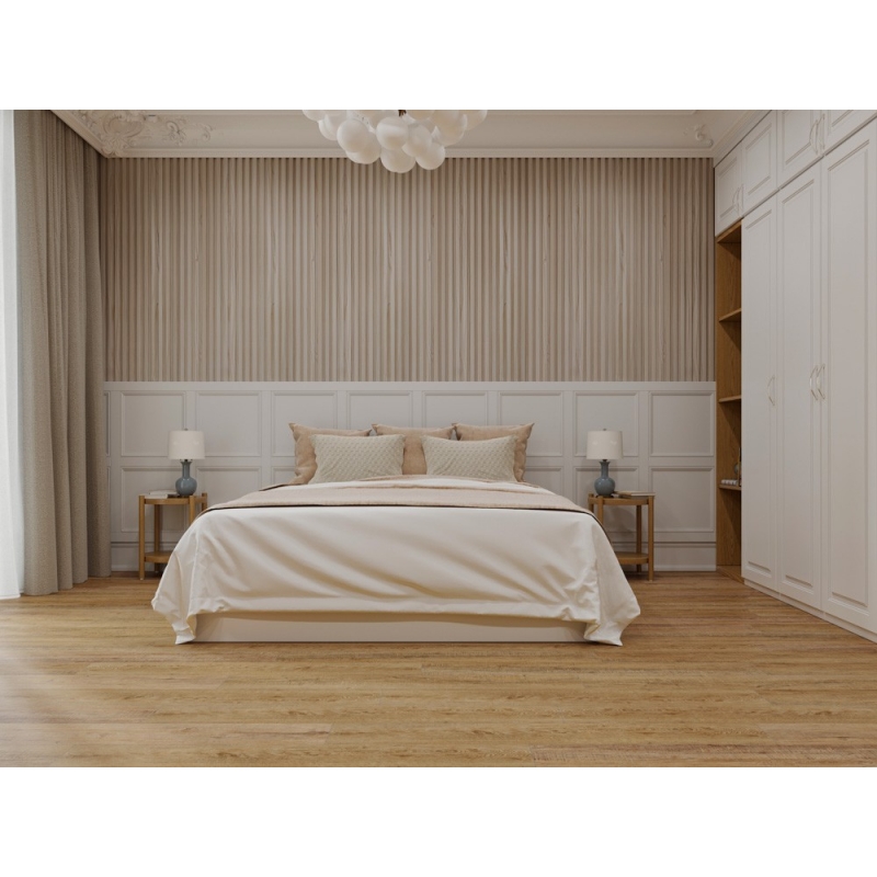Полимерно-каменное покрытие Cronafloor Wood W015 Дуб Робуста с фаской по периметру для замковой укладки, толщиной 4 мм от Российского производителя Cronafloor. Дизайн выполнен под дерево