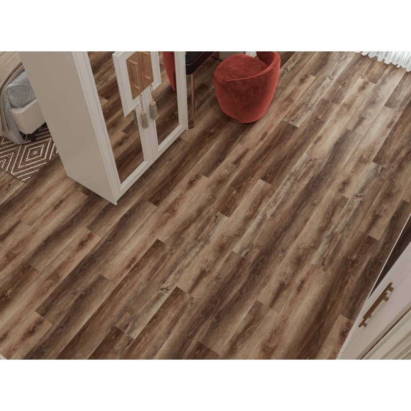 Полимерно-каменное покрытие Cronafloor Wood W019 Дуб Охрид с фаской по периметру для замковой укладки, толщиной 4 мм от Российского производителя Cronafloor. Дизайн выполнен под дерево