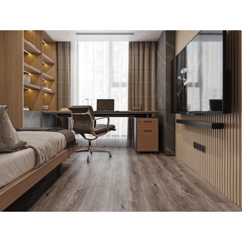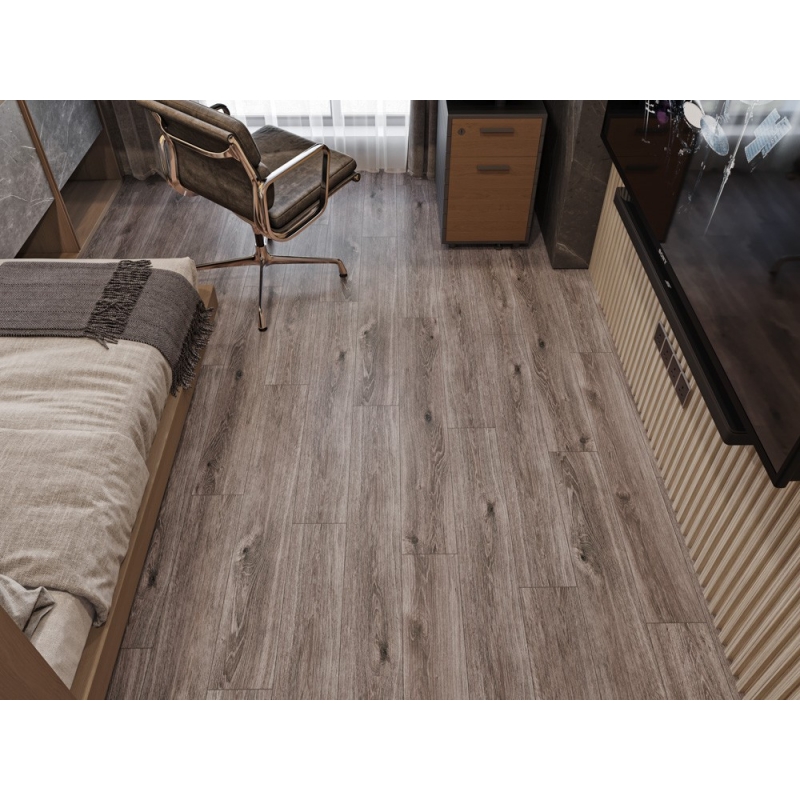 Полимерно-каменное покрытие Cronafloor Wood W020 Дуб Хельсинки с фаской по периметру для замковой укладки, толщиной 4 мм от Российского производителя Cronafloor. Дизайн выполнен под дерево