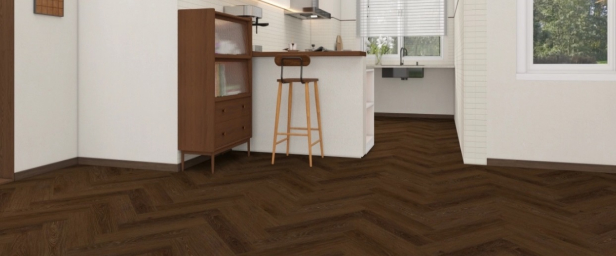 Полимерно-каменное покрытие SPC UNION Art Collection AR03-13 Орех Картен в формате Английская елочка - это идеально..